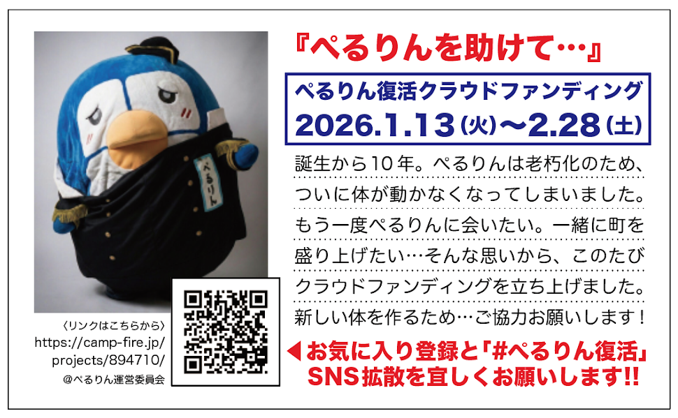 ぺるりん復活クラウドファンディング 開始のお知らせ