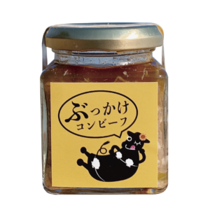 その道60年のベテラン目利きが厳選した黒毛和牛のテールの旨みとコクを、白浜の綺麗な海水で作った自家製天然塩が引き立てる、ご飯にかけるコンビーフです。ニンニクが効いているのでどんな炭水化物とも相性抜群です。価格999円